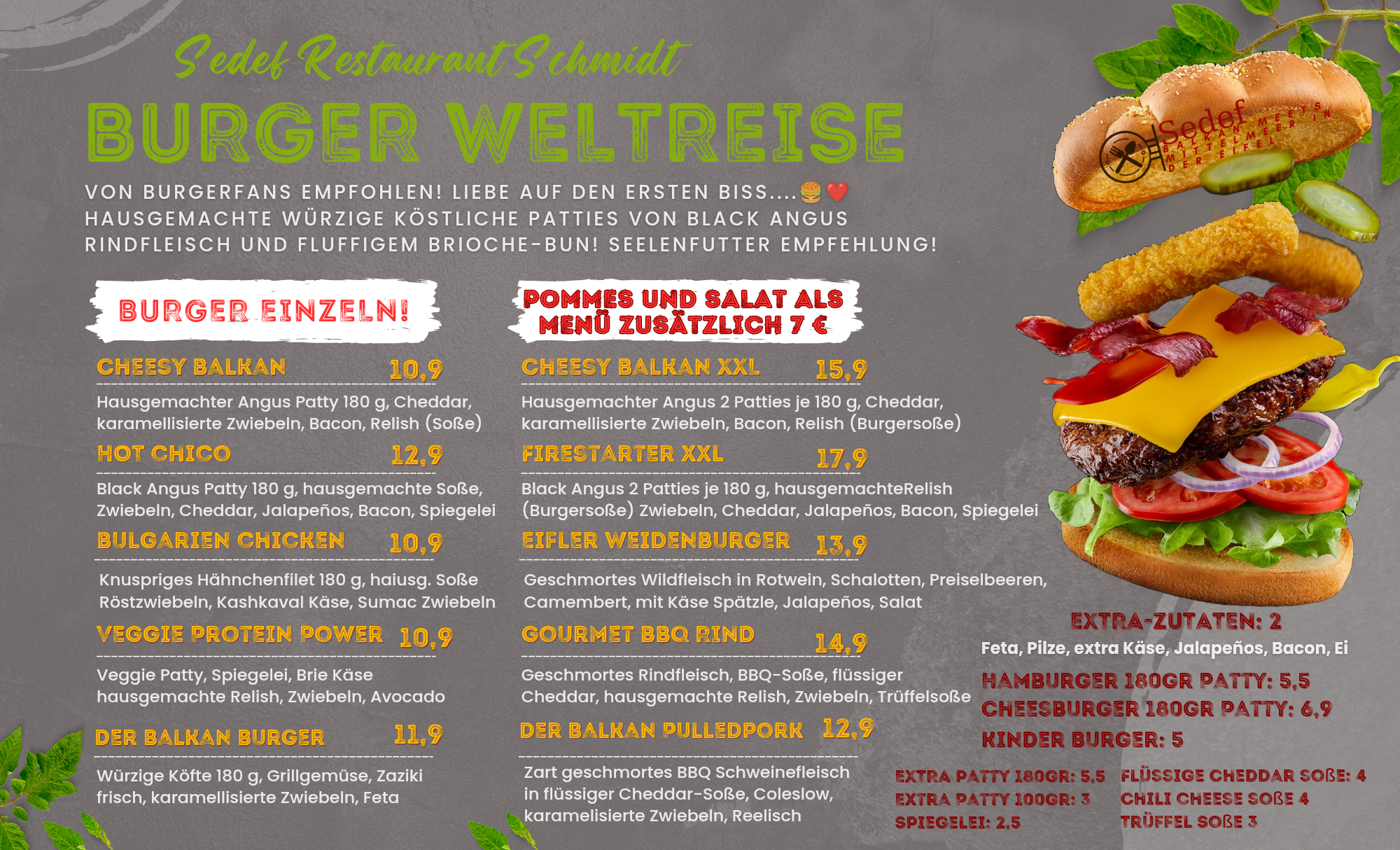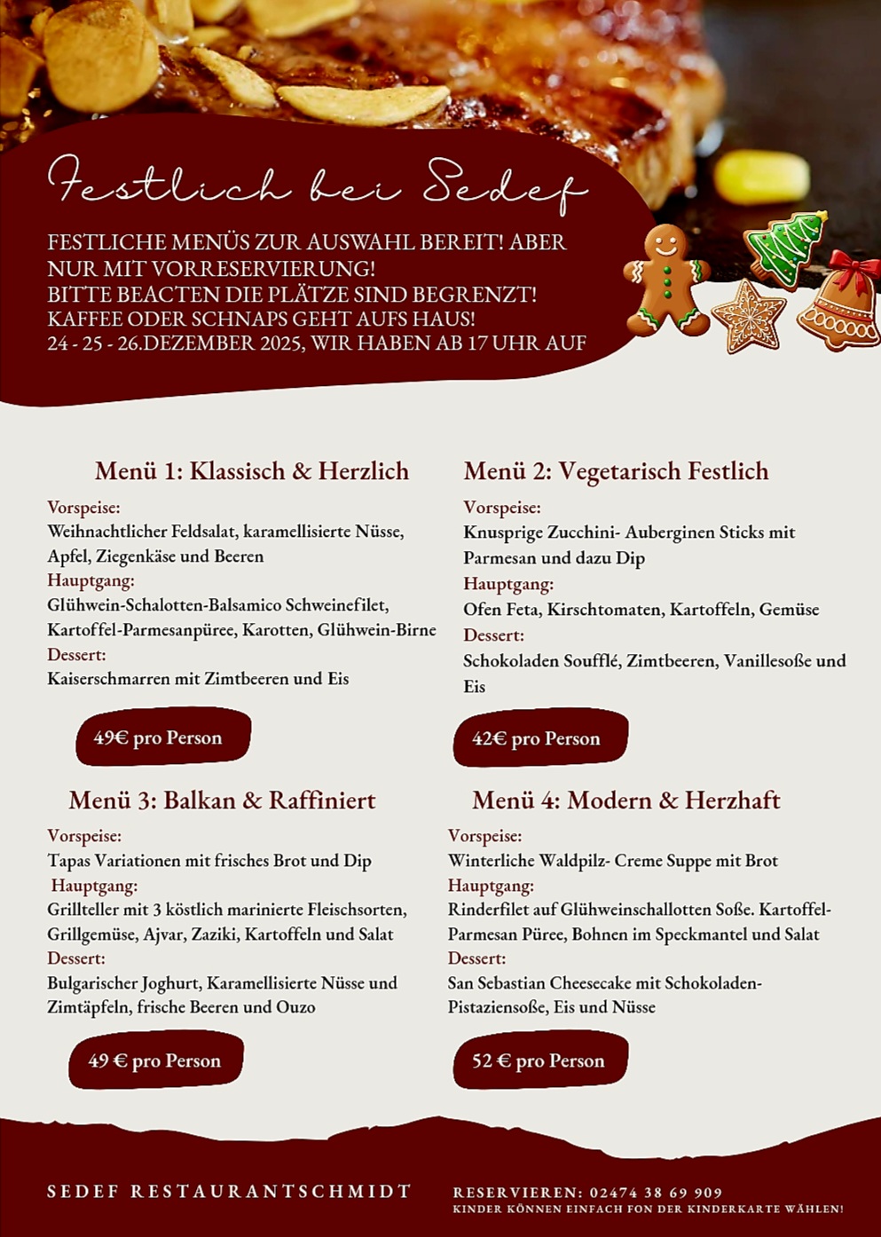 CALL +4924743869909Willkommen im Sedef Restaurant und Biergarten Schmidt , gelegen in der nähe von Burg Nideggen, Burg Heimbach, der wunderschöne Rursee, tolle Wander und Radwege und in eine unmittelbare nähe der schöner Wildpark Schmidt.